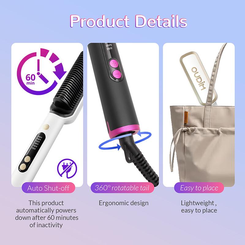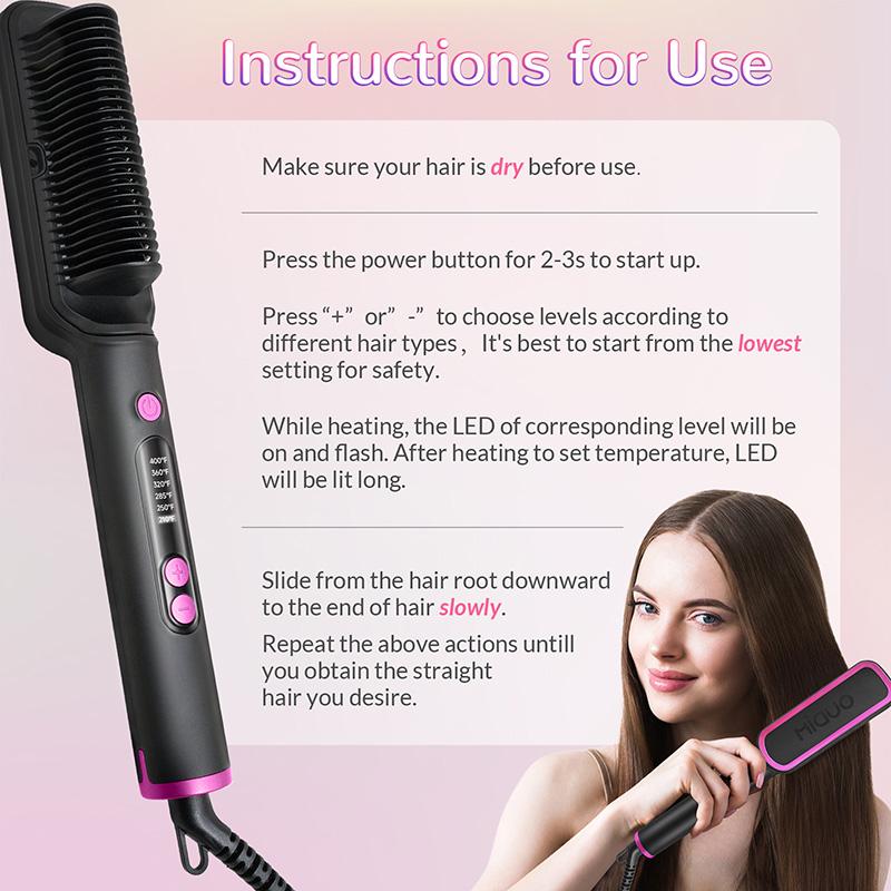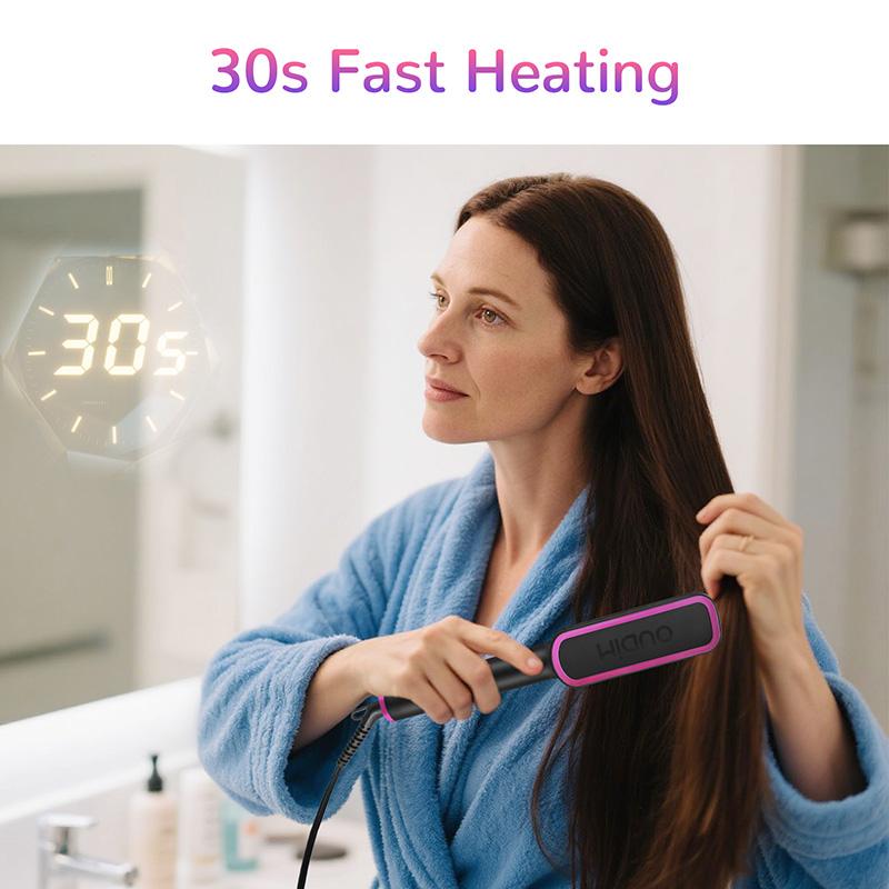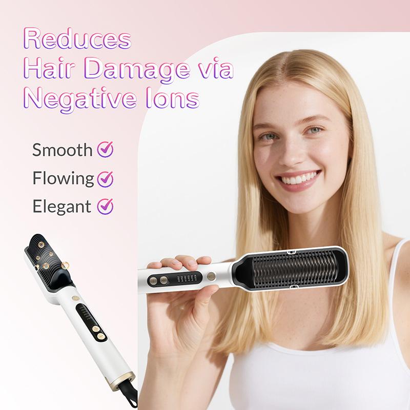 - 6 Adjustable Heat Settings (230–400°F) 🌡️Customize the temperature to suit your hair type, from fine to thick or curly. Preheat the brush fully and glide it slowly for salon-level smoothness in just a few passes.